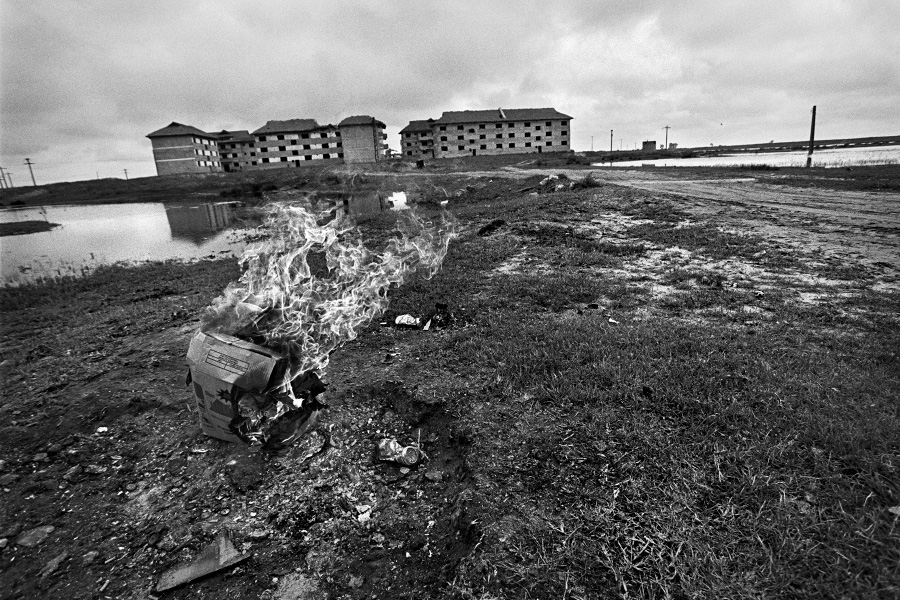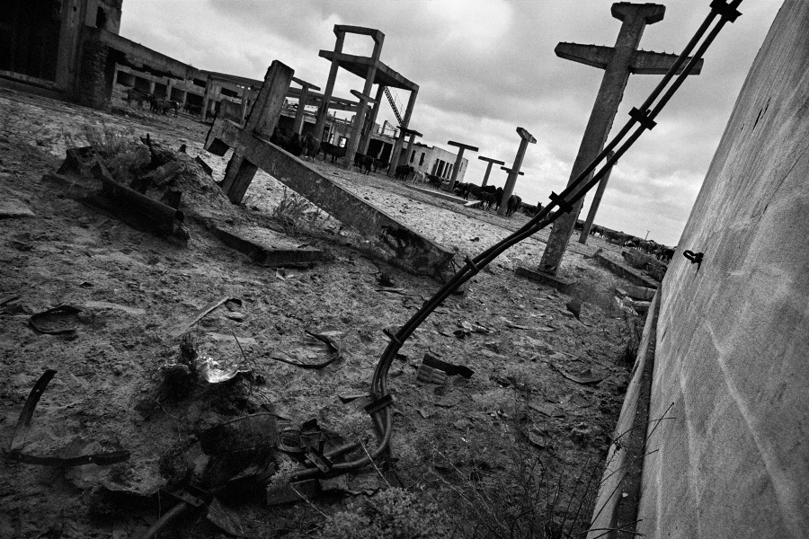 Danube Delta is a natural reservation home to hundreds of fish and bird species, many of them unique to the region. The Delta is also home to a few dozens secluded communities of fishermen, living in acute isolation. During the late eighties, the communist rulers planned to turn the village of Caraorman into an industrial town aimed at exploiting the high-quality sand found in the area. The regime’s collapse in 1989 brought the development plans to a halt. Although most of the industrial buildings, including the workers’ quarters, were completed at that time, the plant never opened, and it has since been left to decay. More than two decades later, the people of Caraorman still struggle to cope with the environmental consequences of this misfortune, including the disappearance of fertile soil for crops and cattle. Most of the steel structures are gradually vanishing as more and more villagers have started to disassemble the buildings single-handedly and sell them to recycling facilities. The remaining concrete structures are used as stables, while the three-story apartment buildings intended to host workers have been taken over by wild donkeys. scroll down to view |
