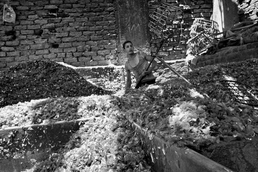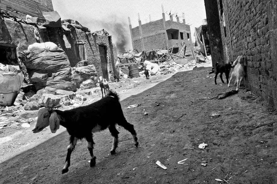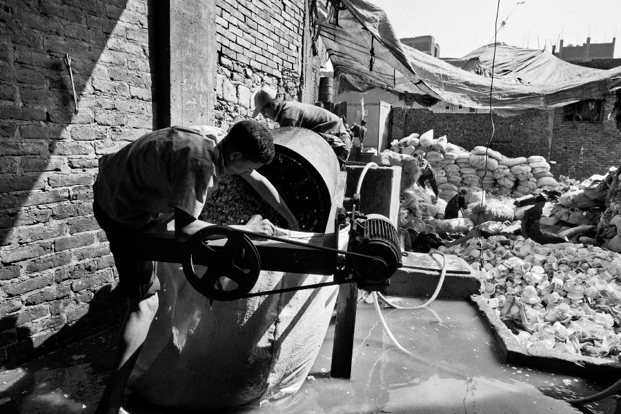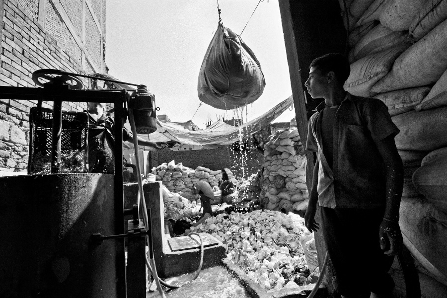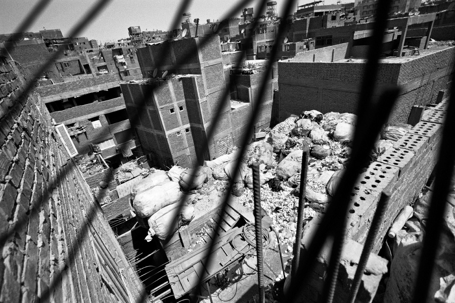 In Egyptian Arabic, Zabbaleen means “garbage people”, or those who make a living from processing waste. In Cairo, for more than seventy years, the Zabbaleen have provided the main way for collecting and disposing the city’s waste. Even today, many of Cairo’s 19 million inhabitants rely on this informal, door-to-door method of waste management. These photographs were taken in Moqattam village, Cairo’s largest “garbage city”. Moqattam is a 30,000 strong community of mostly Coptic Christians who live on the outskirts of the city in extreme poverty. Their largely unfinished houses serve as both garbage sorting dumps and residences. During the last two decades, the Zabbaleen have developed a very efficient sorting and recycling system that enables them to sell most of the production to middlemen in order to create new materials. All current efforts to formalize Cairo’s waste disposal service assign a significant role to the Zabbaleen. scroll down to view |